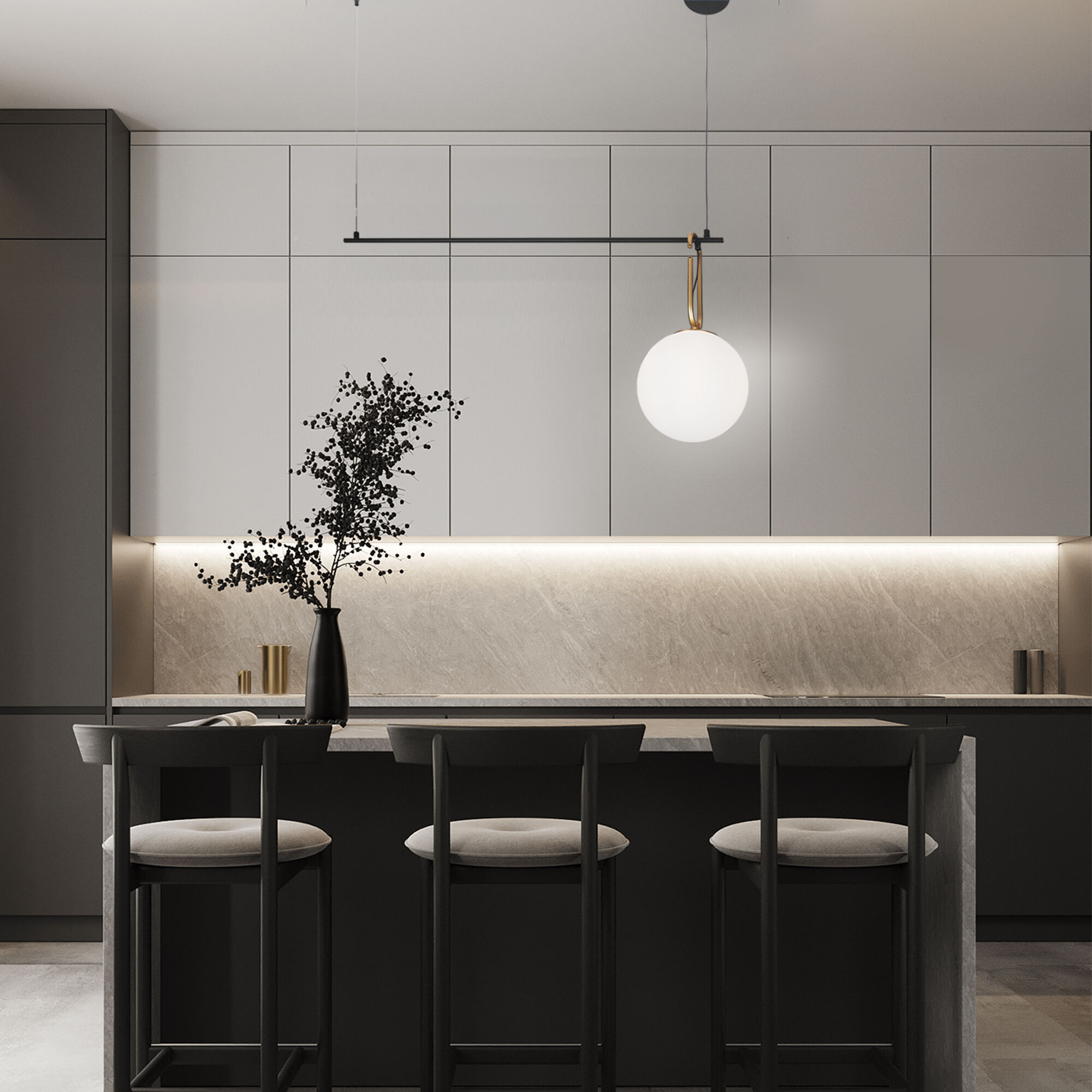 Светильник со стеклянным плафоном оборудован системой регулировки высоты подвеса, позволяющей размещать изделие на разных уровнях, уменьшая или увеличивая угол рассеивания светового потока. Подвесной светильник просто устанавливается на натяжных потолках при помощи монтажной планки.