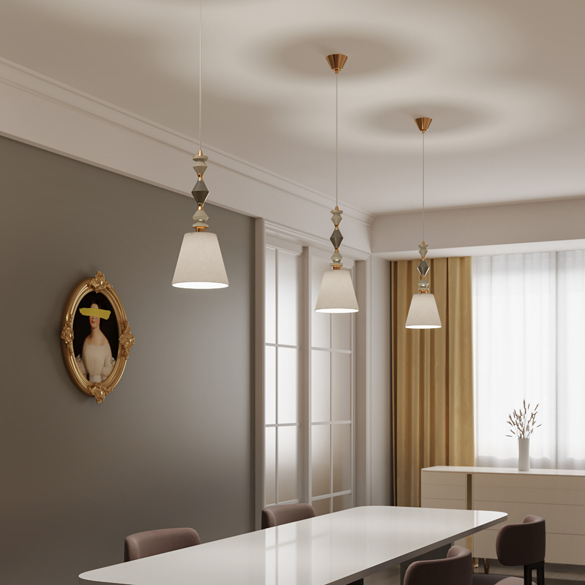 Тканевый абажур создает приятное, не слепящее освещение, идеально подходящее для гостиной, спальни или столовой.