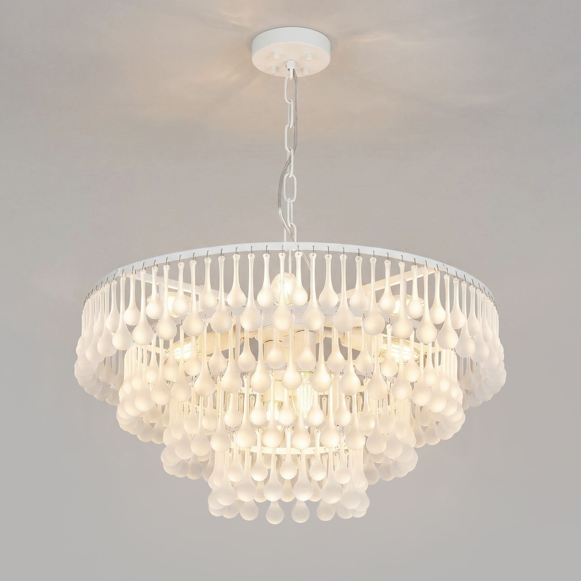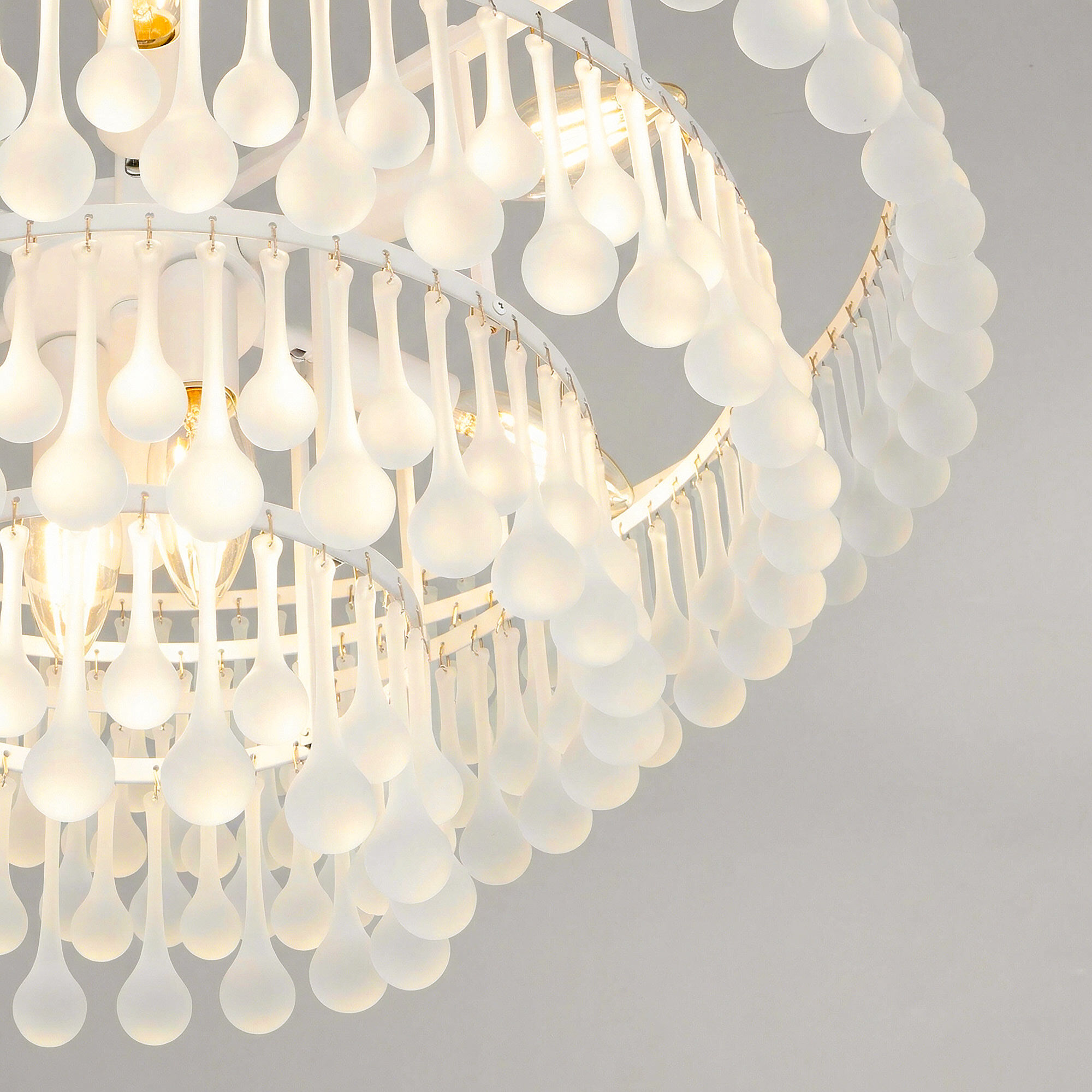 Коллекция Gutta является воплощением аллегории чистоты. Белоснежное основание моделей дополнено изысканными каплевидными подвесками, напоминающие ювелирные кулоны, где капли, выполненные из прозрачного матового стекла, выглядят как застывший воск свечи.