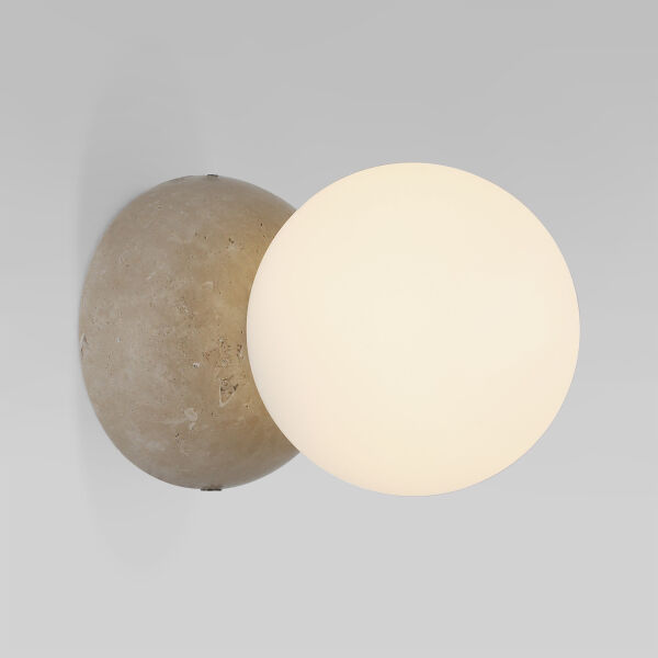 Настенный светильник из коллекции Stone создаст неповторимый визуальный эффект в любом помещении. Натуральный камень травертин придает изделию природную энергетику, подчеркивая уникальность интерьера. Благодаря матовому стеклянному плафону бра создает приятное освещение, идеальное для чтения, отдыха или создания уютной атмосферы.