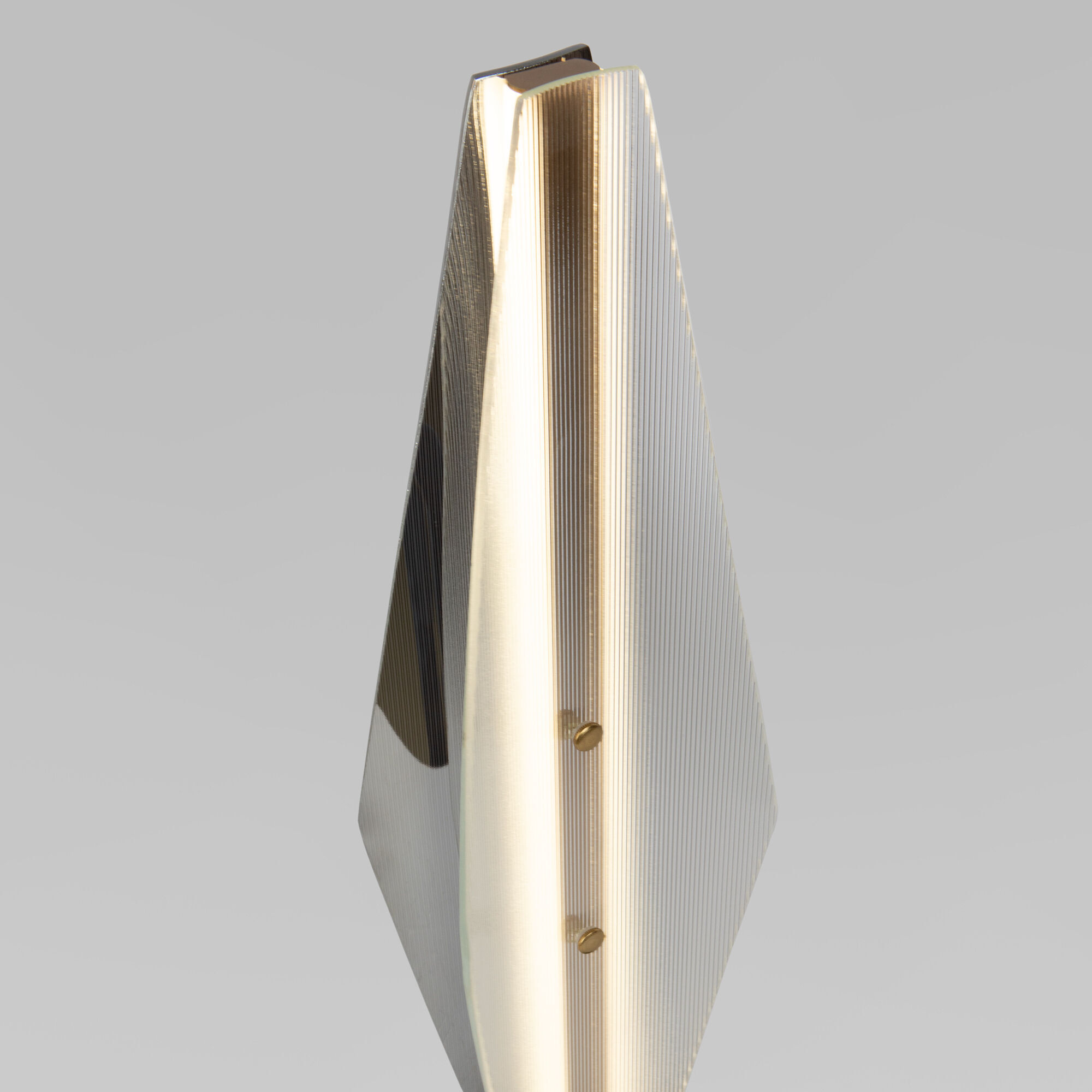 Настольный светильник из коллекции Glare - это сочетание современного дизайна и элегантной функциональности. Его необычная форма, напоминающая застывший кристалл или современную скульптуру, сразу приковывает взгляд.
