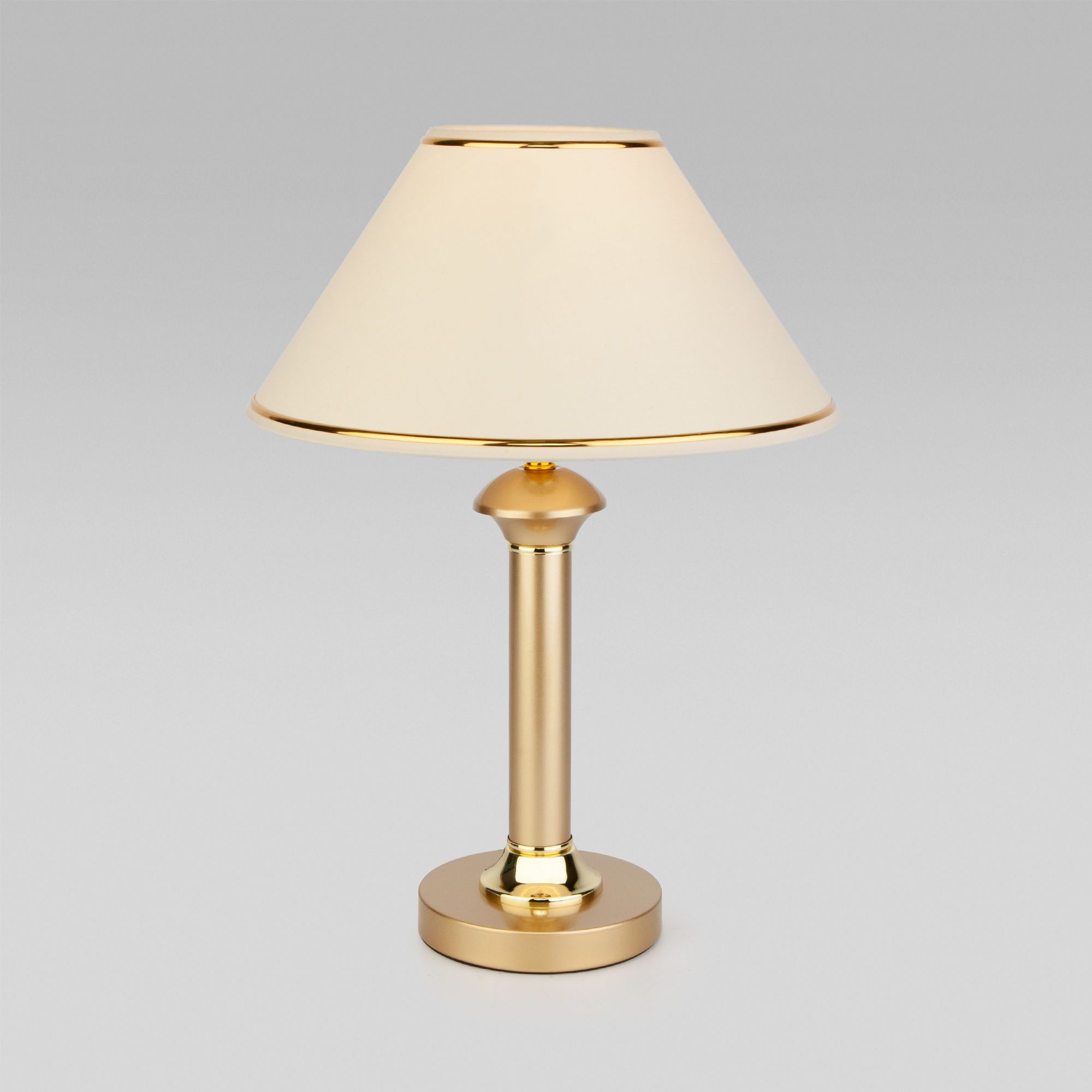Благодаря бежевому тканевому абажуру настольная лампа создает мягкое рассеянное свечение, подходящее для комфортного чтения книг в вечернее время. Прочный металлический корпус светильника устойчив к механическим воздействиям, а защитное покрытие обеспечивает надежную электроизоляцию и презентабельный внешний вид.