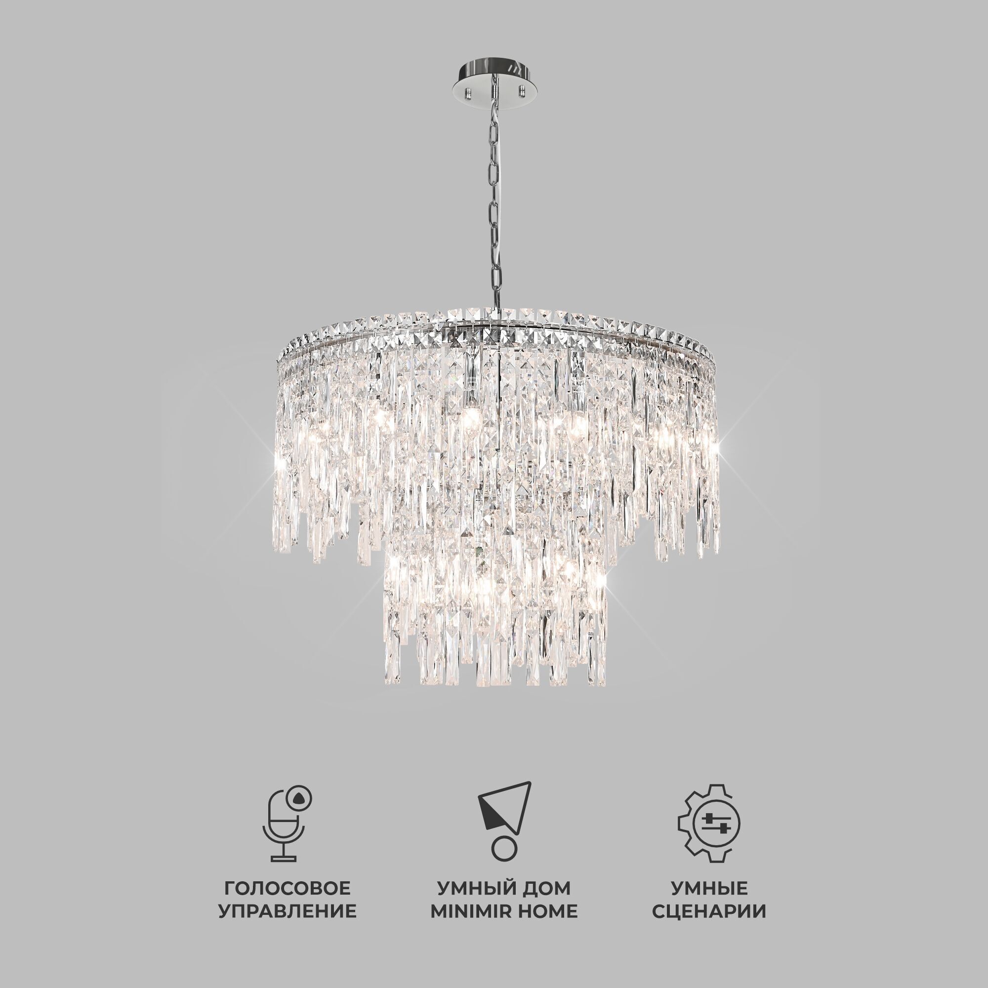 Выразительная люстра с хрусталем 60160 хром преобразит потолочное пространство и создаст в вашем помещении полноценное освещение на площади 36 м кв.