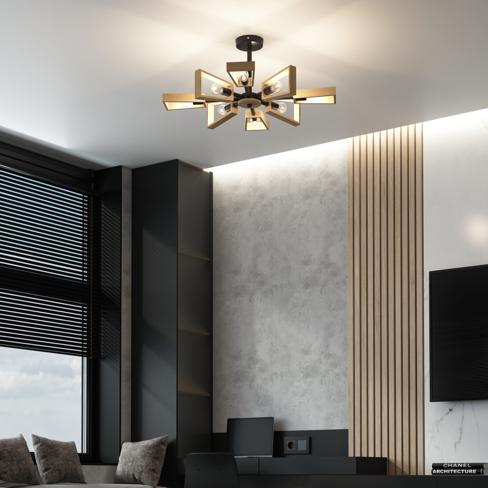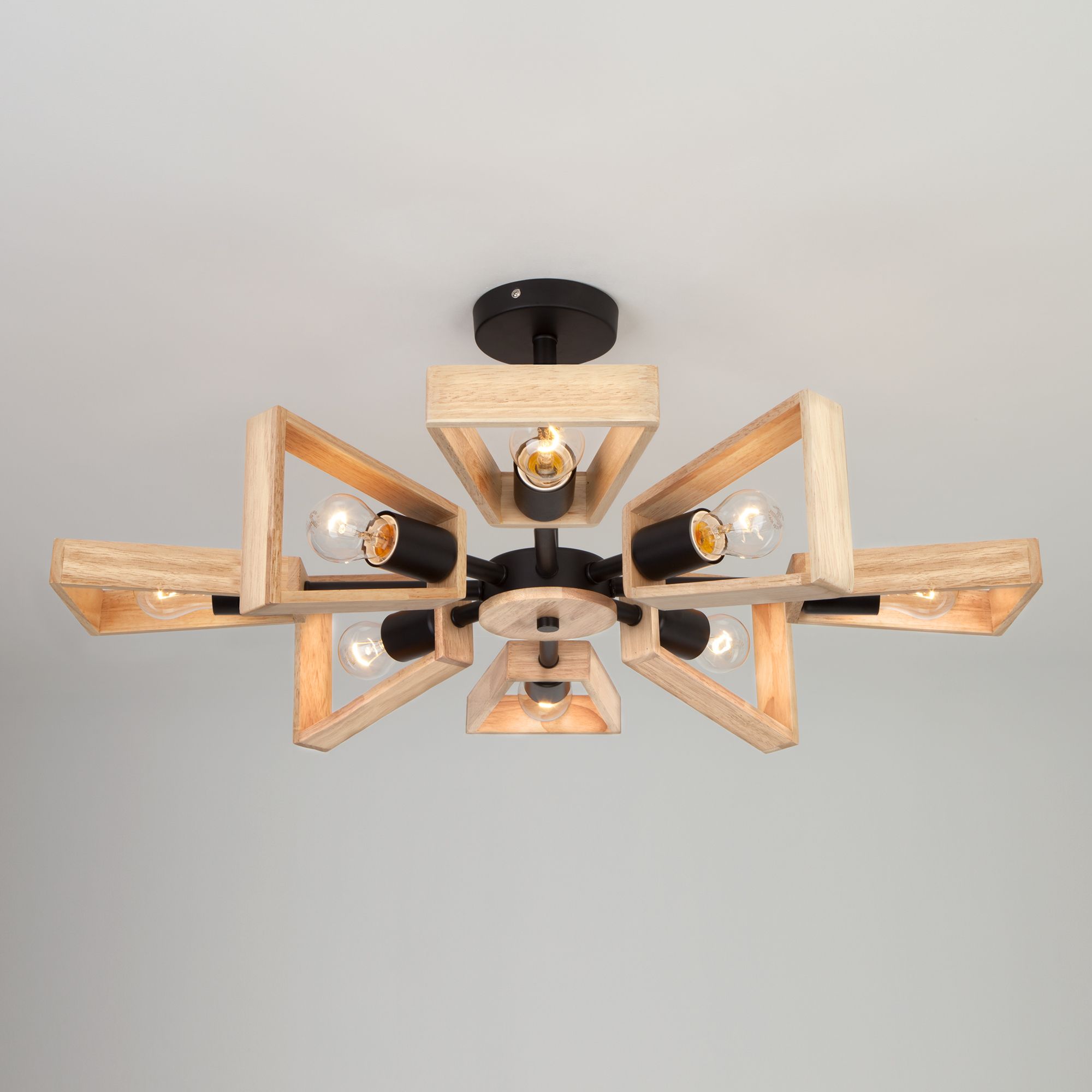 Потолочная люстра лофт с деревянными элементами