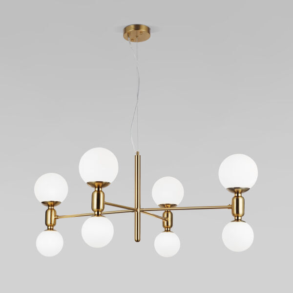 Подвесная люстра Bubble в цвете латунь – это выразительное сочетание геометрических форм и лаконичного дизайна. Круглые плафоны белого цвета разных диаметров формируют мягкий равномерный свет. Светильник рассчитан на 8 сменных ламп. Люстра Bubble добавит уникальную атмосферу в интерьер спальни, гостиной или кухни.