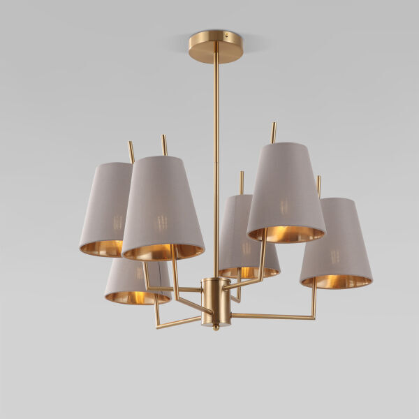 Организовать качественное освещение вам поможет классическая потолочная люстра с тканевыми абажурами 8 штук в коричневом цвете. Простые минималистичные формы и сдержанные тона станут прекрасным дополнением для вашего интерьера.