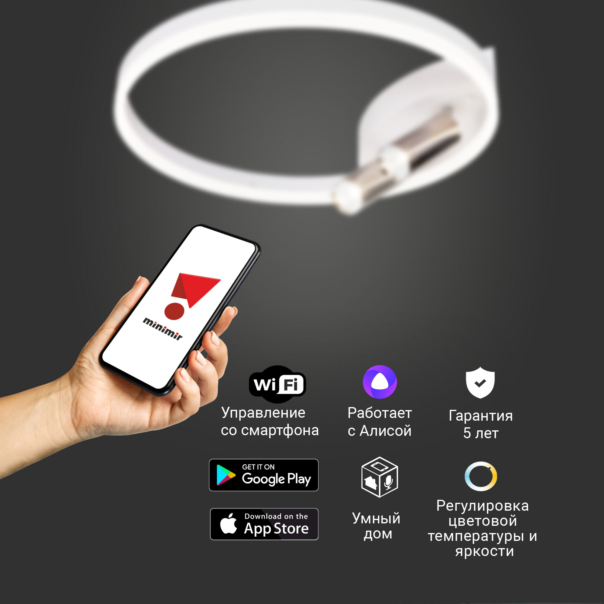 Основное освещение управляется с помощью мобильного приложения Minimir Home или голосовых помощников, дополнительное освещение, в виде спотов, управляется с помощью пульта, который входит в комплект.