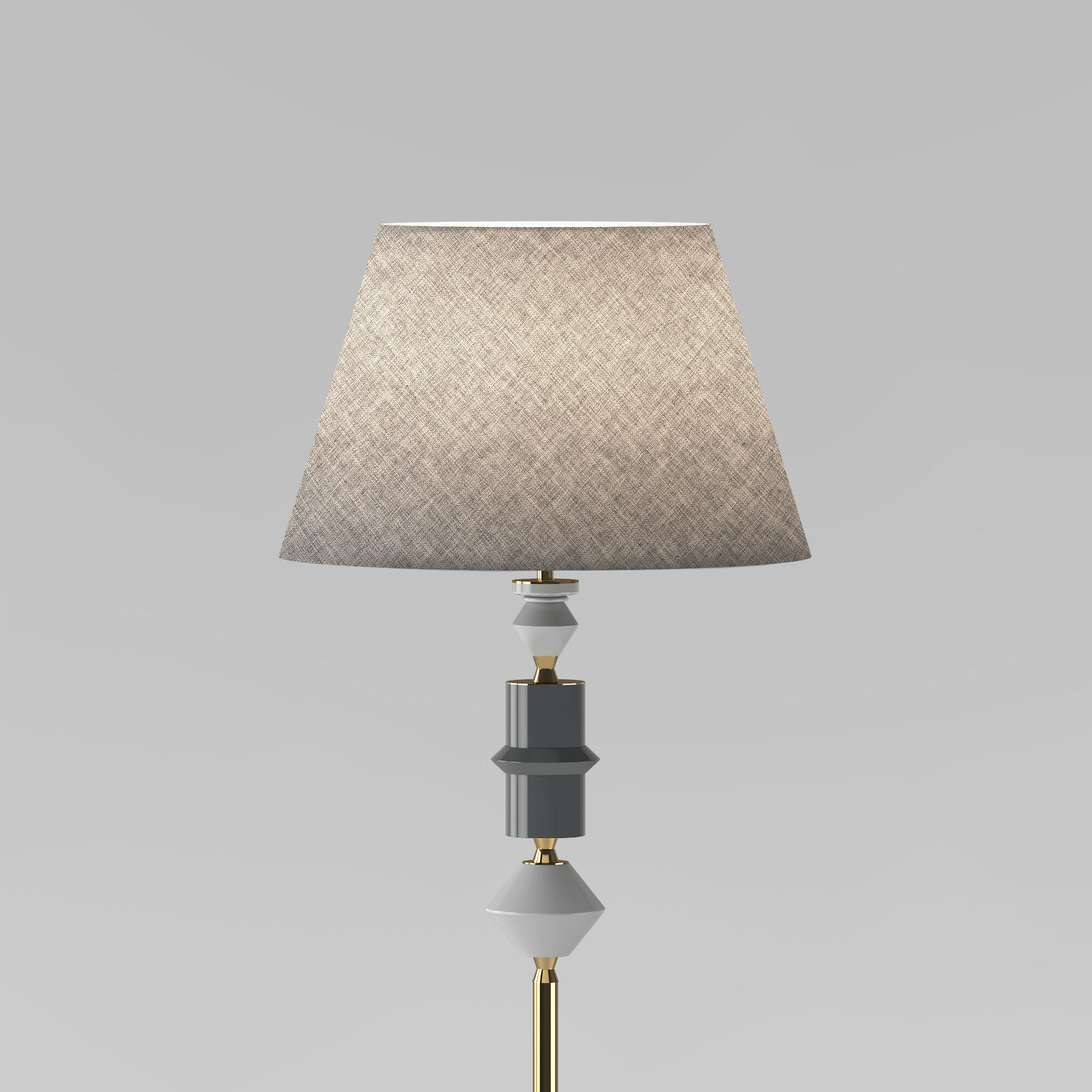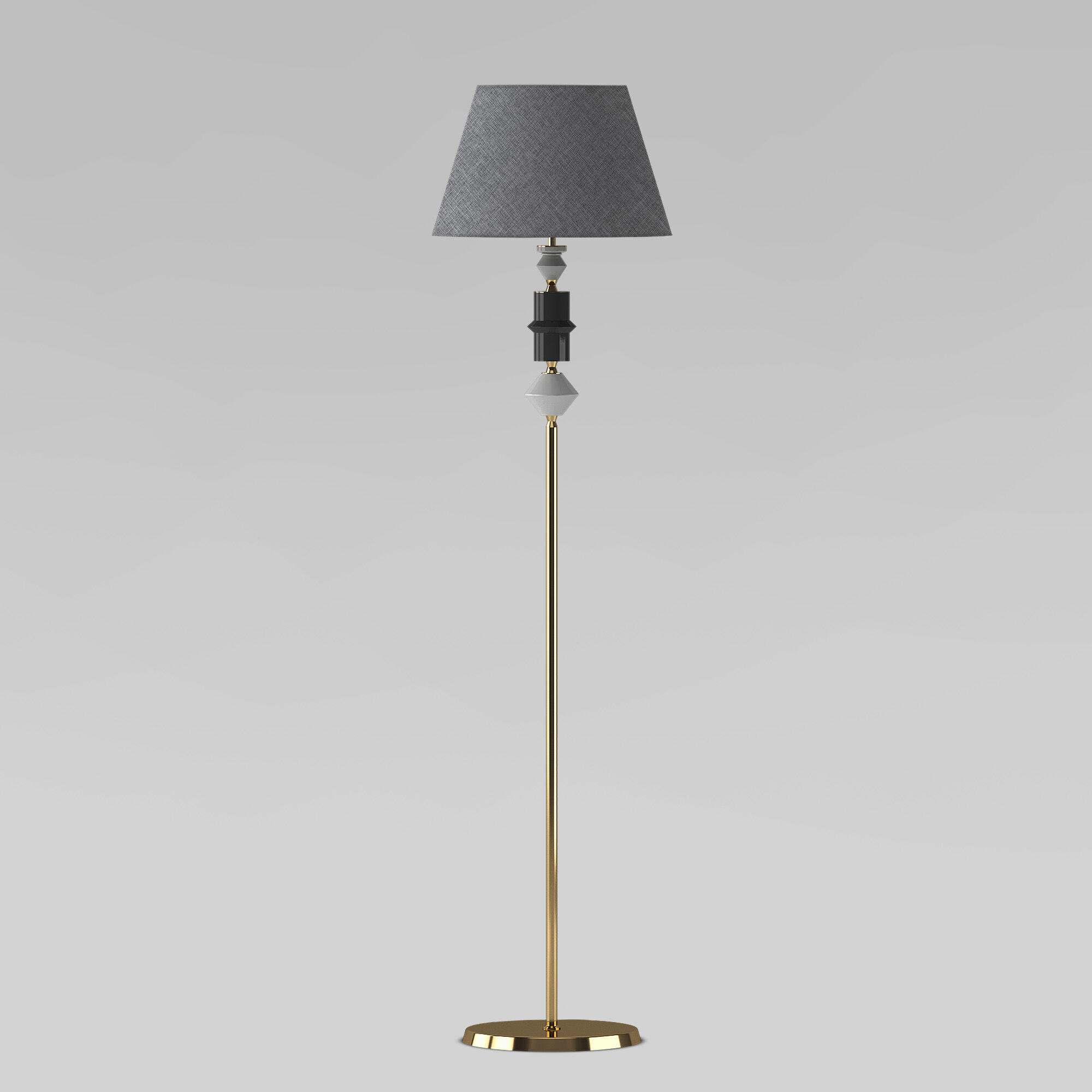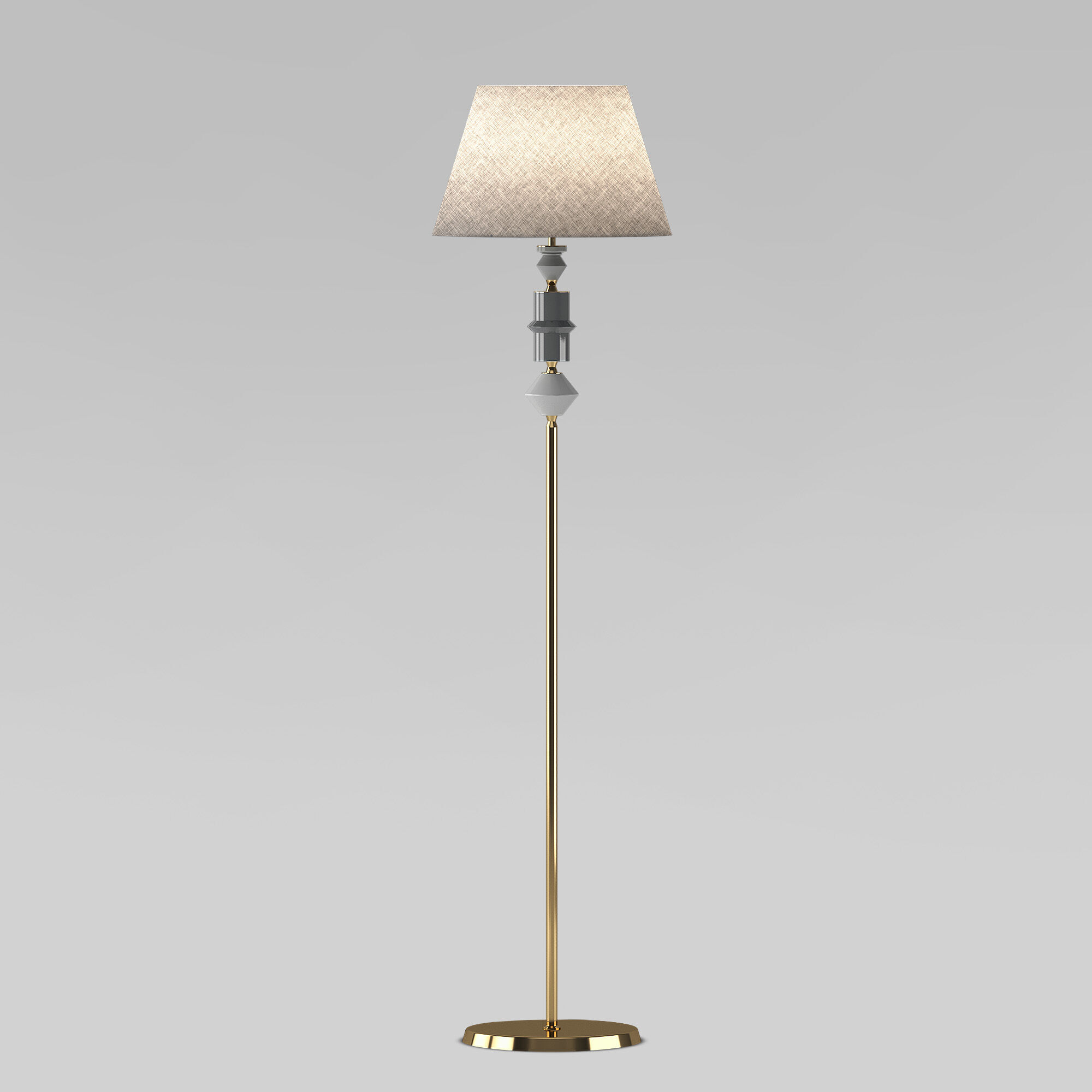 Арматура в цвете латунь придает торшеру легкость и воздушность, а нейтральный абажур создает мягкий, рассеянный свет.
