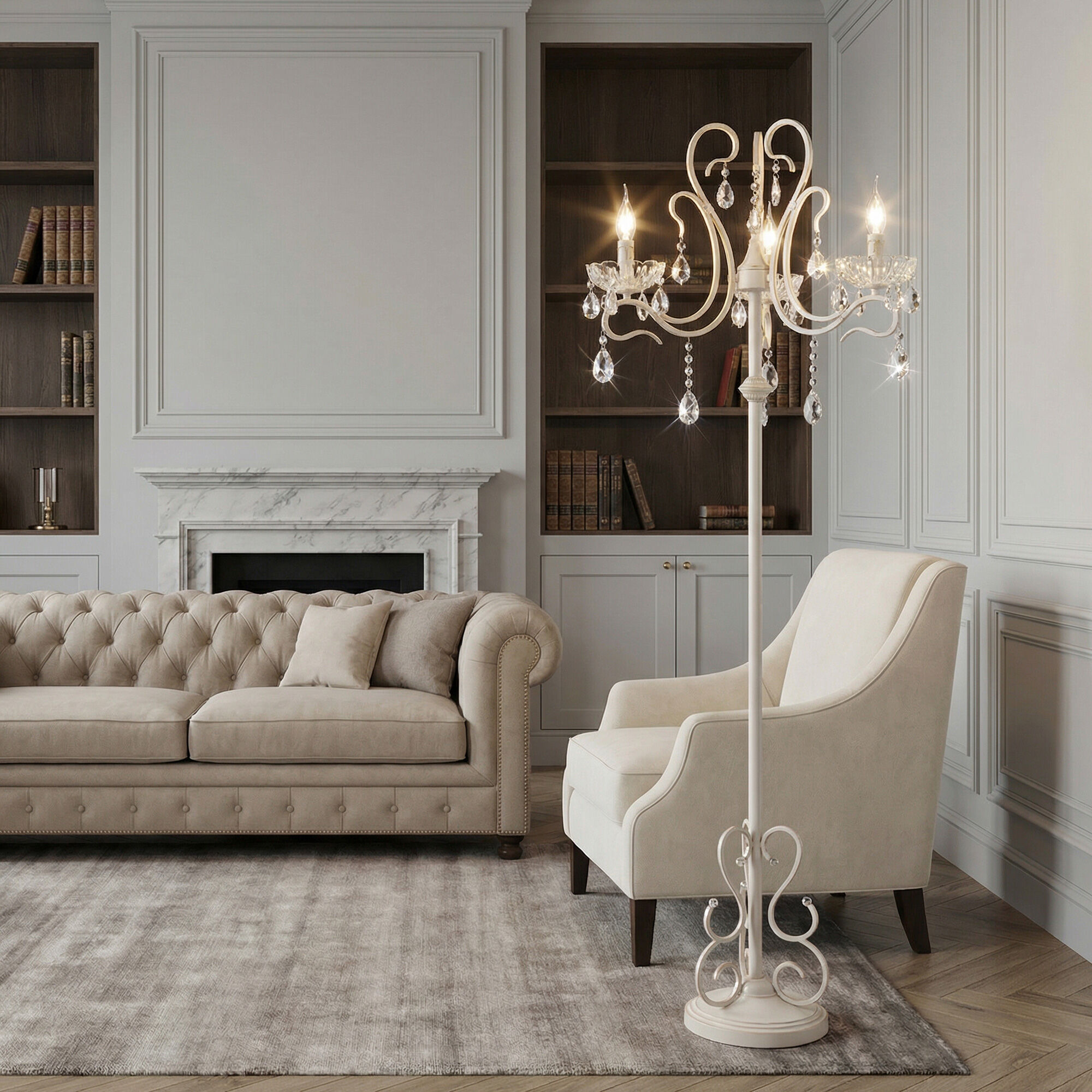 Торшер с хрусталем белый 12205/3F белый - это стильный элемент светового дизайна в современных и классических интерьерах. Выразительный и современный торшер со сменными лампами E14 поможет создать качественное дополнительное освещение на площади 10 м² и станет изящным украшением вашей комнаты.