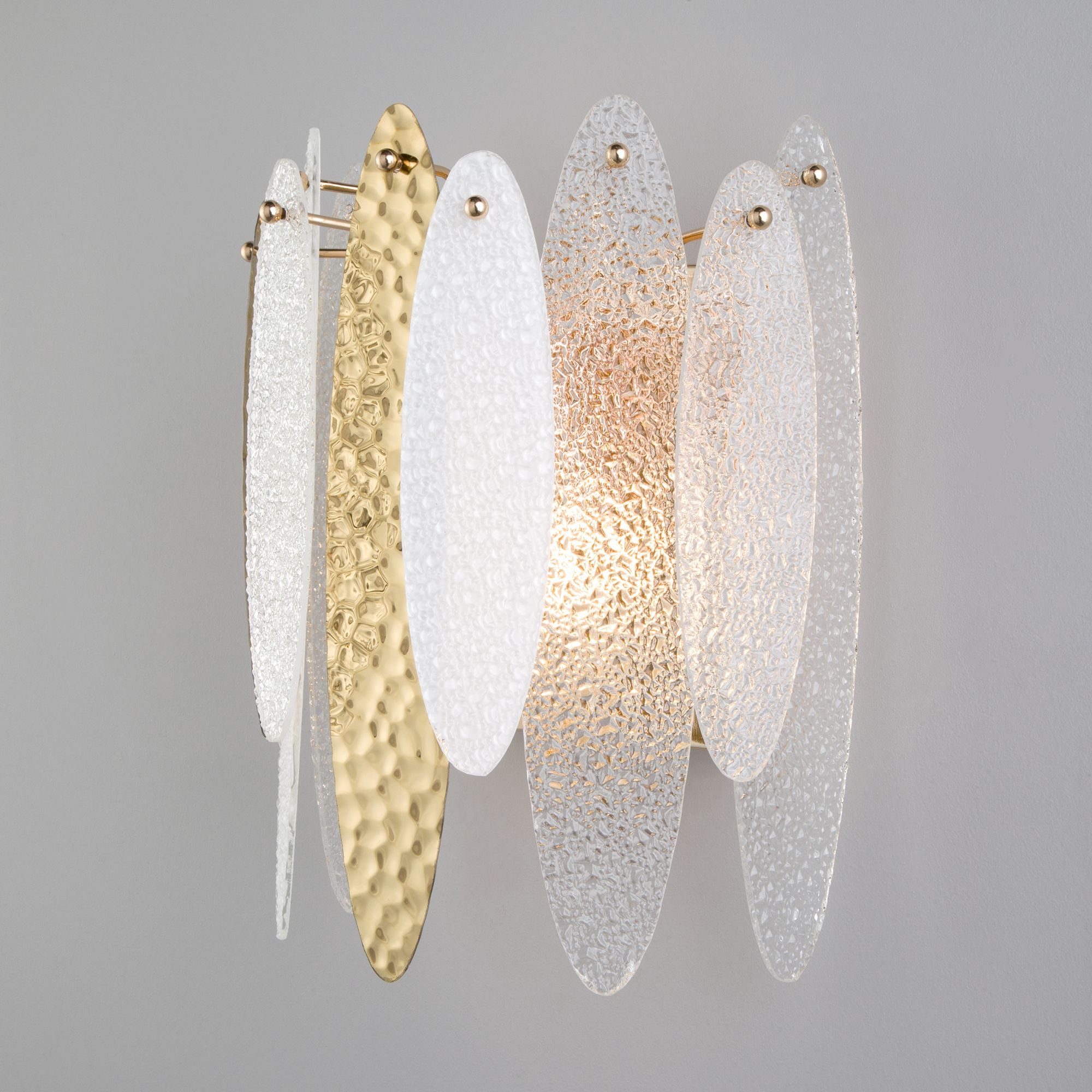 Настенный светильник с фактурным стеклом 326/1 создаст качественное дополнительное освещение и станет ярким дополнением к основному источнику света. Благодаря стеклянному декору, бра создает мягкое рассеянное свечение, подходящее для комфортного чтения книг в вечернее время. В качестве источника света используются сменные лампы типа "Свеча" или "Шар" с цоколем E14. Патрон рассчитан на максимальную мощность ламп накаливания 60 Вт.