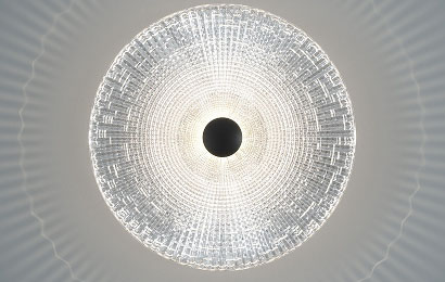 Симфония чистоты формы и света, словно морская волна, застывшая в мгновении. Рассеиватель светильника Occhio, объемный дизайн которого вдохновлен песчаными реверсивными дюнами, вносит уникальную динамику в атмосферу интерьера.